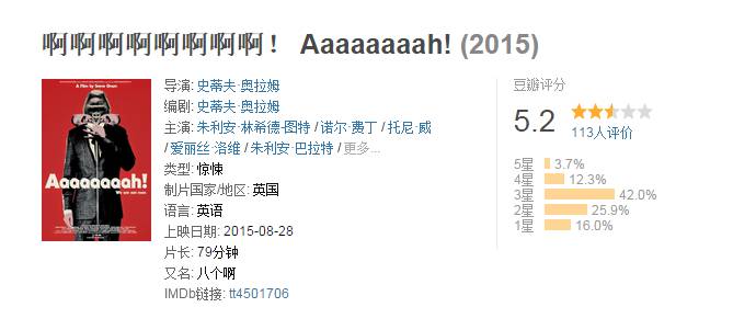 这是一部具有实验性的重口味惊悚电影,电影原名为《aaaaaaaah!》。跨越语言障碍,全世界都能从电影名中感受到那种不可名状的癫狂和恐惧。