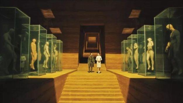 去复制人公司时,两排放在玻璃柜里的复制人,也因为没有穿衣服被挪出画外。