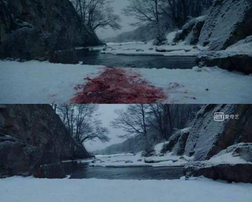 原版中,在小李子最后一场决战后,雪地留下的血迹没有了。