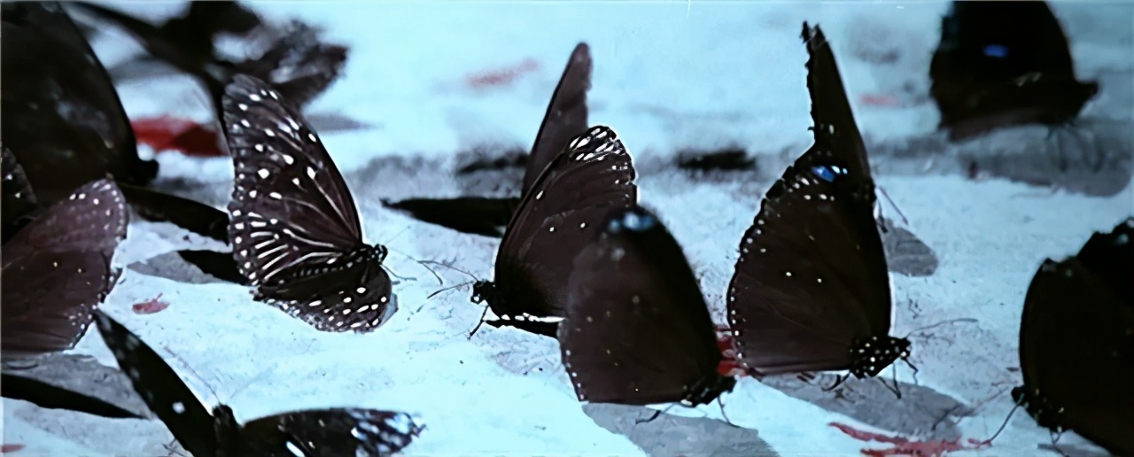 在特效不发达的年代,剧组开始用剪纸蝴蝶,谁知效果出奇的好,和真蝴蝶差不多。
