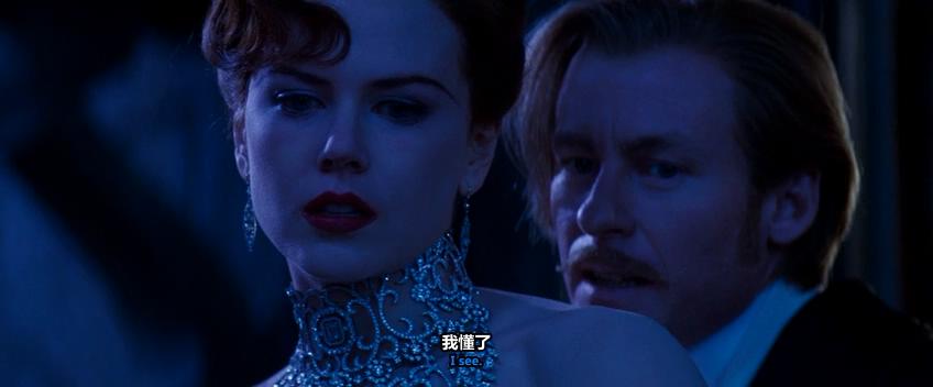 萨汀一角无疑是影片的灵魂角色,不仅是故事矛盾的集中点,还承载着主题背后的反思与批判。值得称赞的是,妮可·基德曼完全把握到了萨汀一角的精髓。萨汀是个具有表演型人格的舞女,而这种性格并非是与生俱来,而是一种迫于生存意志而练就的职业技能。出身清贫的萨汀因为卑微身世、出于对贫穷的恐惧、对生存的渴望,不得不物化自我来在获取生存空间。