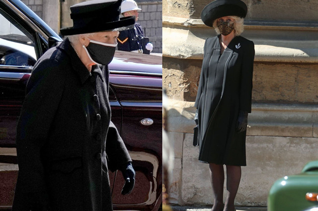 伊丽莎白女王到达圣乔治教堂时,穿着全身黑色,包括帽子,只是在口罩的上下边,露出白色的滚边。当天的造型是由私人助理兼高级化妆师安吉拉·凯利(angela kelly)设计的。
