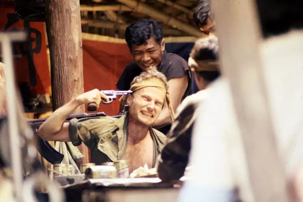 越军首领拿人质的姓名玩轮盘赌,在一把手枪里放1颗子弹,上膛,轮流对着自己脑袋开枪,看哪个人的脑袋先爆掉。麦克跟尼克商量用一把枪上三颗子弹,去豪赌自己的一线生机,他们成功了。