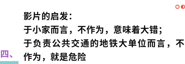 简而言之,影片就围绕两条线索展开:一是从小家庭的角度——安德烈一家,妻子失职,丈夫不作为;二是从大单位的角度——地铁公司,员工的一个恶习,其他人的不作为。由小见大,将个人的问题上升到对他人的影响,从而说明了不作为的危害。