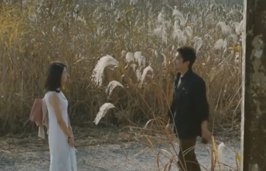 二人游荡在郊外的麦田中格外自在清闲
