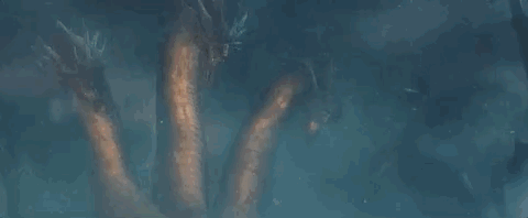 最终在《哥斯拉2》中的2019年,被错误唤醒的巨兽王者基多拉(三个头的那只)与哥斯拉正面刚。