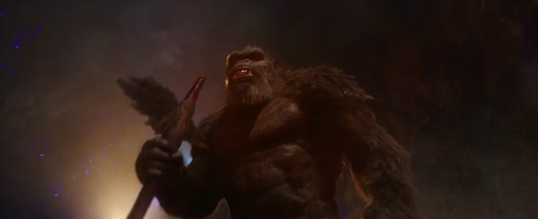 金刚终于在地心找到趁手兵器,一柄用哥斯拉背鳍制作成的斧子。