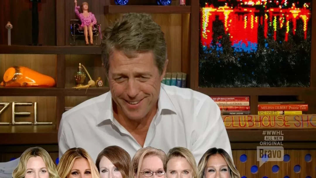 在2016年的一档脱口秀节目上,主持人请hugh grant玩个游戏:把跟他合作过的女明星的脸挡住一半,让他猜她们是谁。
