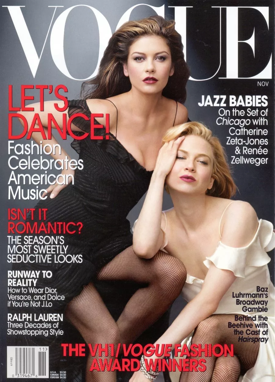 renée在1998年、2002年、2005年拍摄的vogue封面