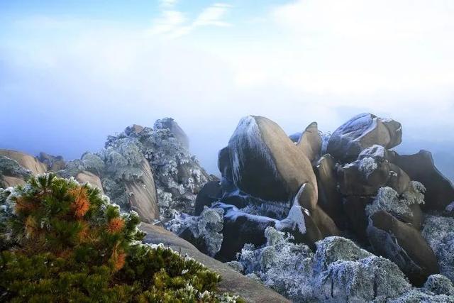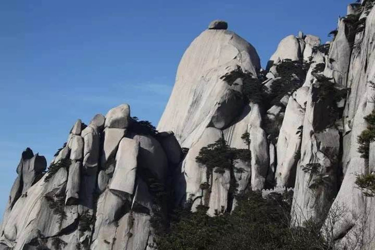且看天柱山的主峰——天柱峰。 海拔1488.4米, 天柱峰上部全是白色的麻子石,形状如刀削、如鹅蛋,也许年代太久,雨水在石上冲刷出瀑布一样的印痕。依阶上到这儿,才发现远不止一块飞来石,在飞来峰东侧还有成千上万块巨石不规则地堆放着,攀山的路其实就在石堆的缝隙中。上面几乎没有树木和杂草,全是一块块像大力士的肌肉那样暴突出的石头,还有石头和石头中间的经络。它屹立着,仰着头,望着天际,又像伸出手臂,托住苍穹,线条是那么粗犷,形象是那么威武,令人想起奴隶英雄斯巴达克,想起文艺复兴时期米开朗基罗的人体雕塑。