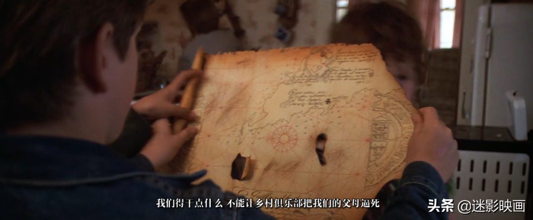 影片的故事基本上就是一部少年版《夺宝奇兵》,讲述了七个出身贫寒的小孩意外发现了一份藏宝图,地图指向了海盗留下的神秘宝藏,于是引发了一连串惊险刺激的冒险。