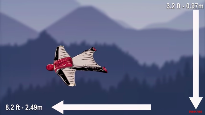 专业讲法叫做无动力翼装飞行,也有的叫近距离天际滑翔或者“飞鼠装滑翔”运动。不难理解,就是运动员穿着拥有双翼的飞行服装和降落伞设备,在外观看起来像飞鼠一样的,从高处(飞机、热气球、大桥顶、高楼顶)一跃而下,运动员通过控制肢体动作来掌控滑翔方向,进行实现无动力空中飞行的一种极限运动。翼装飞行中理想状态下的滑降比例大约在3:1,也就是飞行高度下降了100米,那么滑出的距离就有30米,前进速度可达200公里/小时,等到了飞行高度低至安全范围内,运动员将打开降落伞开始平稳降落,下坠速度为50公里/小时。