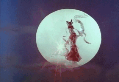 接着,仙人朝月亮扔了一只筷子,筷子幻化成嫦娥,婀娜而下。
