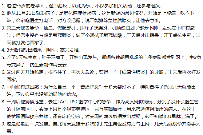 之前还在网上和网友对骂,说自己不用去医院,美国医生告诉他新冠可以自行痊愈,还说自己不吃一粒药就能战胜“病毒”。
