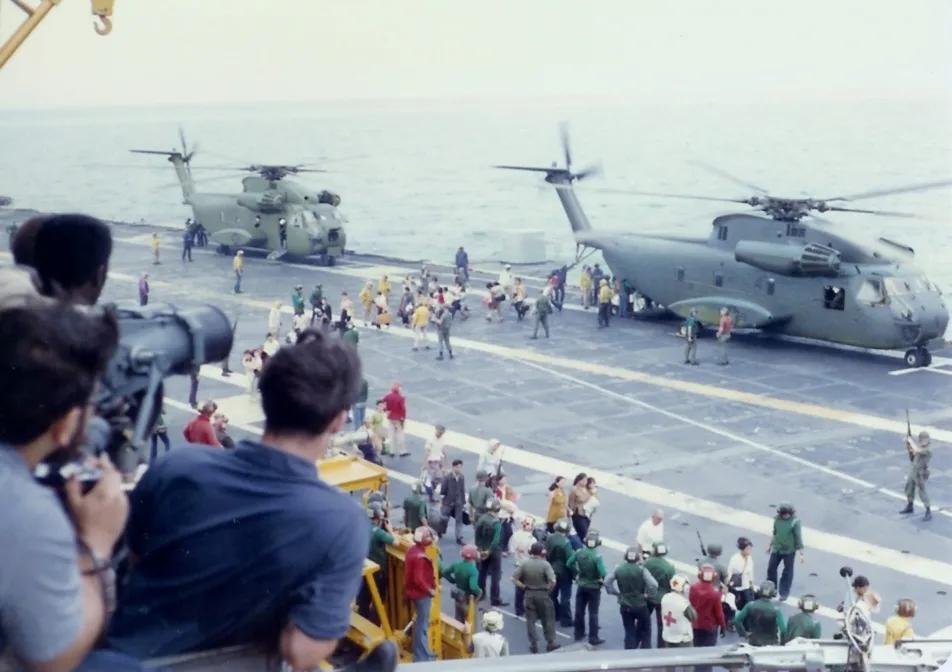 碰巧,旁边的记者就抓拍到了这一幕。这是美国“狂风行动”中的一幕,但在这场撤离行动的记载中看不到这张照片。