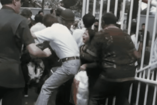 然而人在为了活命时所爆发出来的力量是不可估量的。人群冲破铁链连着的栅栏,冲破一道道门,最终冲上了楼顶。