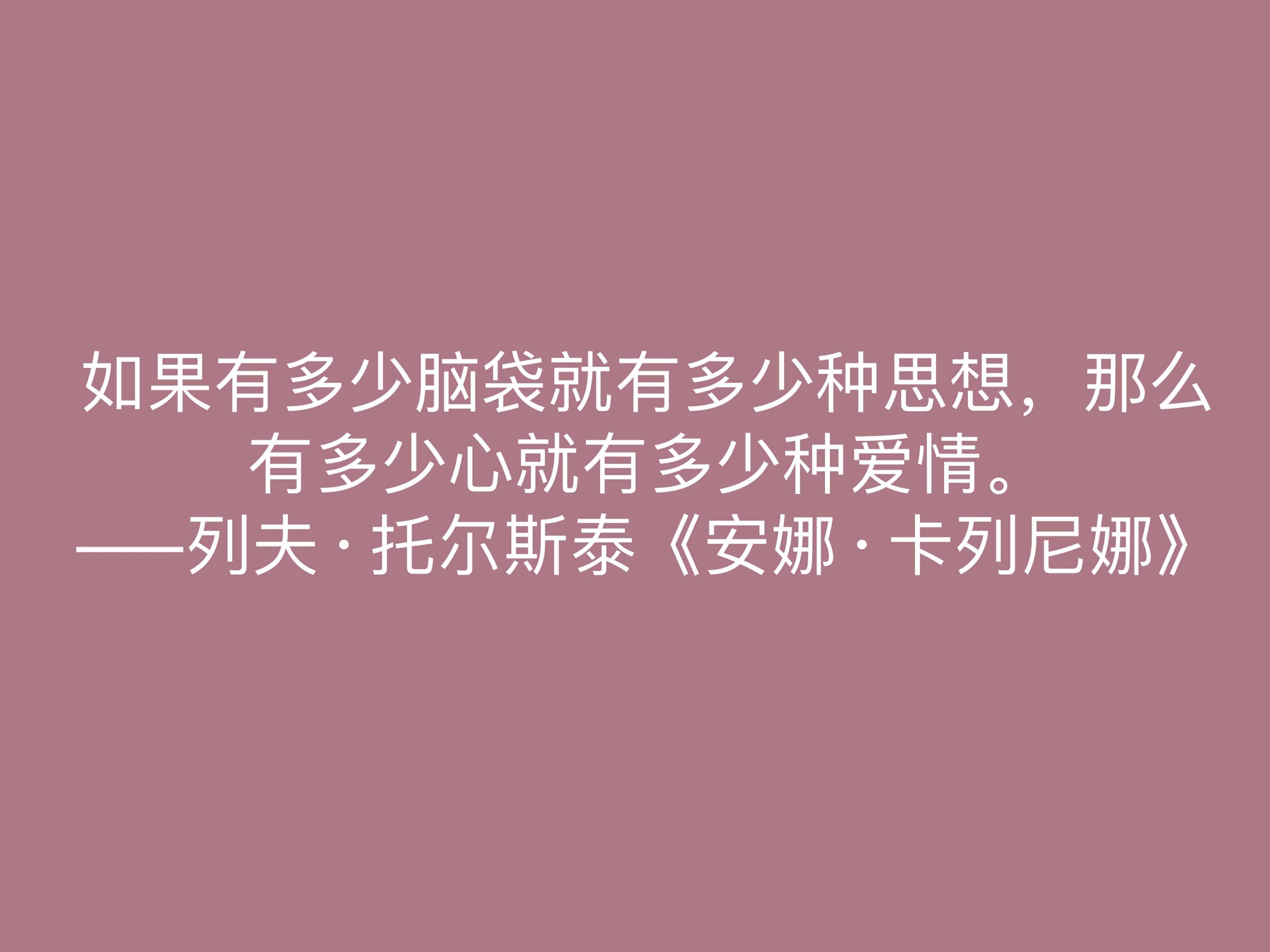 如果有多少脑袋就有多少种思想,那么有多少心就有多少种爱情。 ——列夫·托尔斯泰《安娜·卡列尼娜》