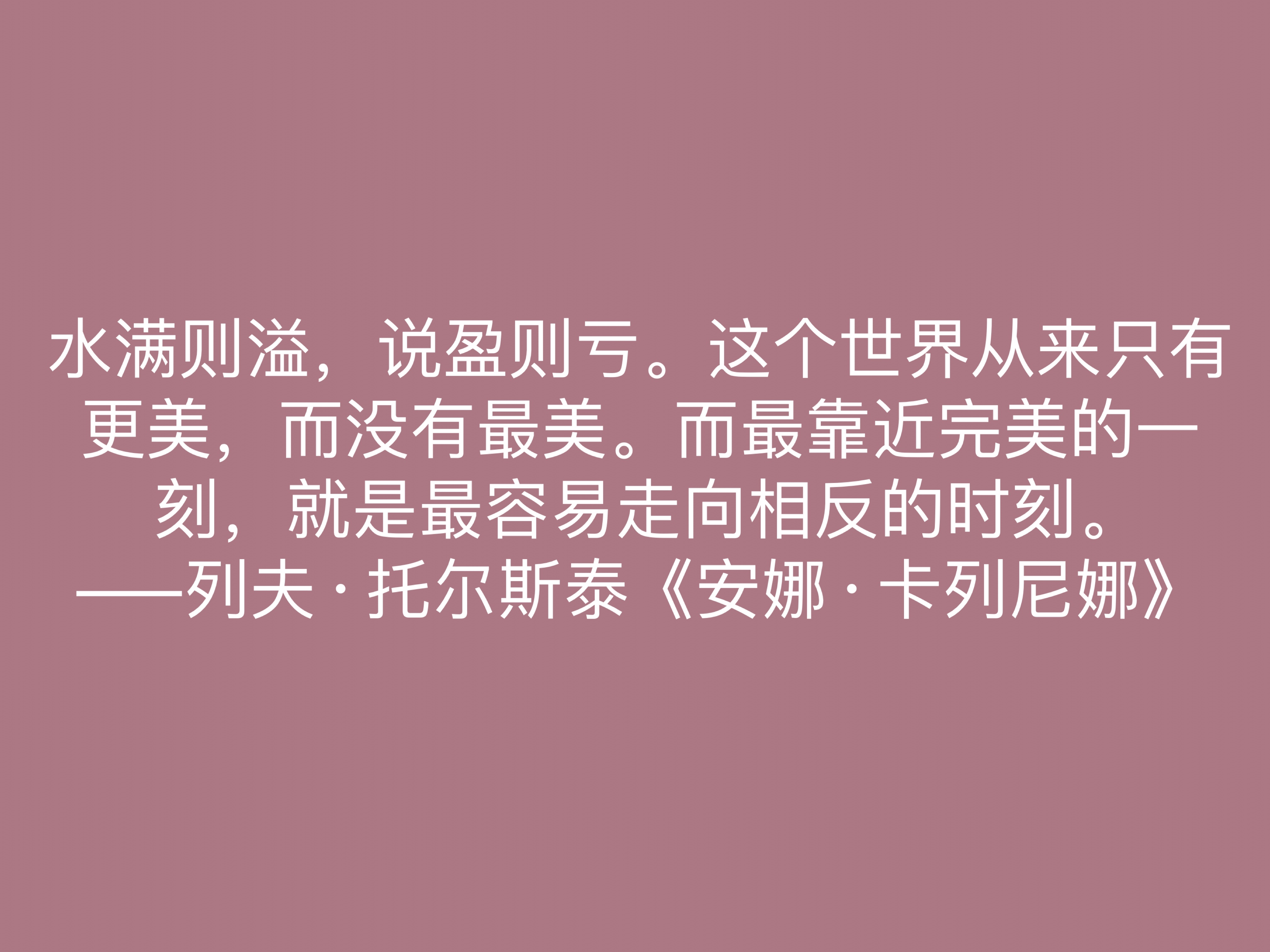 水满则溢,说盈则亏。这个世界从来只有更美,而没有最美。而最靠近完美的一刻,就是最容易走向相反的时刻。——列夫·托尔斯泰《安娜·卡列尼娜》