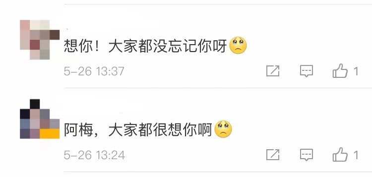 有网友感叹:“阿梅,大家都很想你啊”。