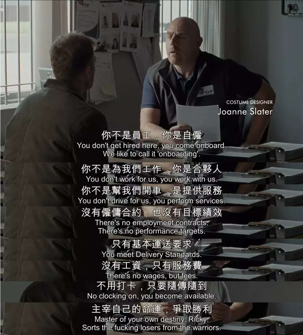他们或许是《风吹麦浪》的爱尔兰内战中备受欺凌的爱尔兰人,或许是《面包与玫瑰》中组织工会的大厦清洁工,或许是《甜蜜十六岁》里想要靠贩毒给妈妈买房子的小男孩,或许是《我是布莱克》中被形同虚设的福利机构压迫的失去尊严甚至生命的木匠布莱克,又或许是《对不起》中这个快递员洛基。