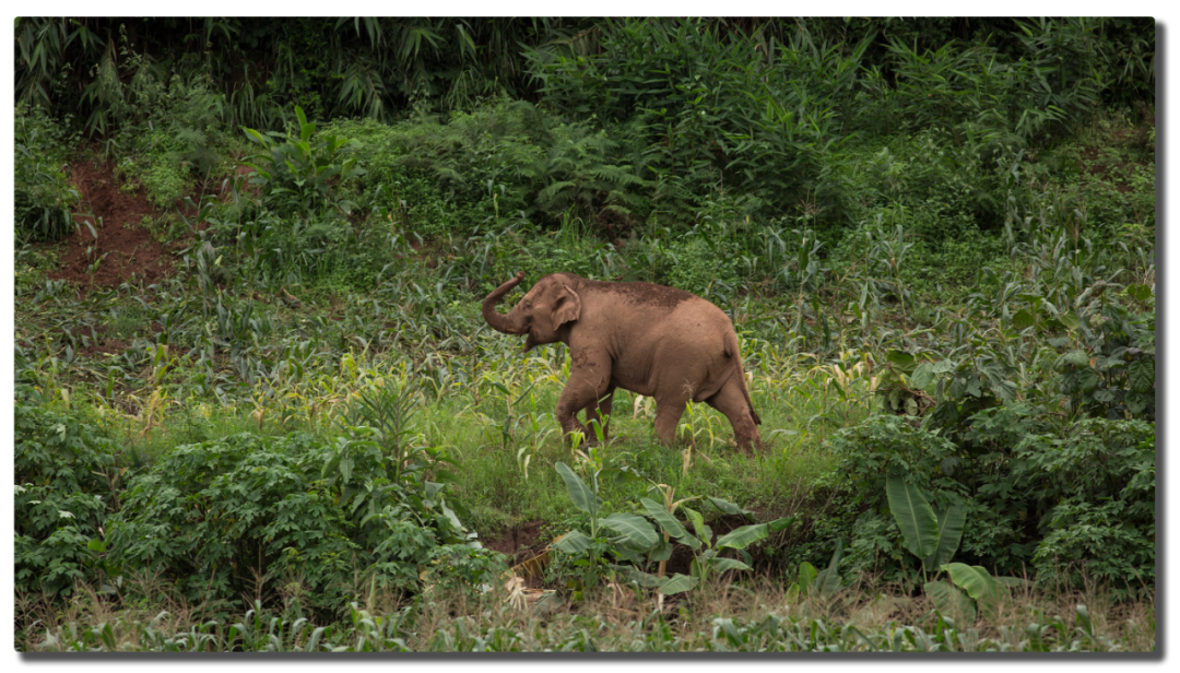 我印象最深的,是第一次见到大象的时候。搬个小凳子坐着等了一天大象也不出来,就躲在对面的次生林里边休息。等到五六点,农民都扛着锄头回家吃饭去了,大象就开始在对面的山林里晃悠,开始吼叫。就是那种报警的声音,告诉大家“我要出来了,你们都走吧”。