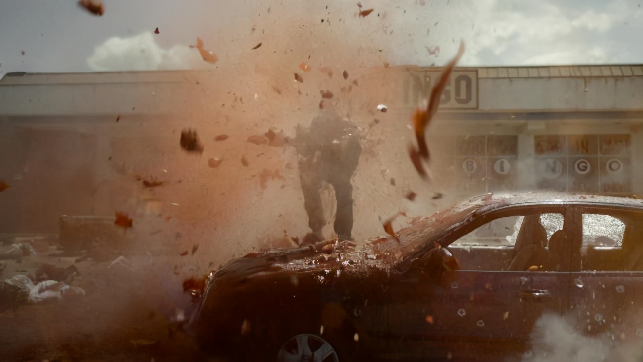 例如影片开篇,导致丧尸逃逸的车祸,试问一辆汽车得多快的车速,才能把军用装甲卡车撞爆啊?