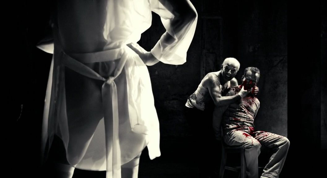 在《罪恶之城》里,三人极具实验性地将“黑”进行到底,创造了一个后现代主义风格的黑白世界。