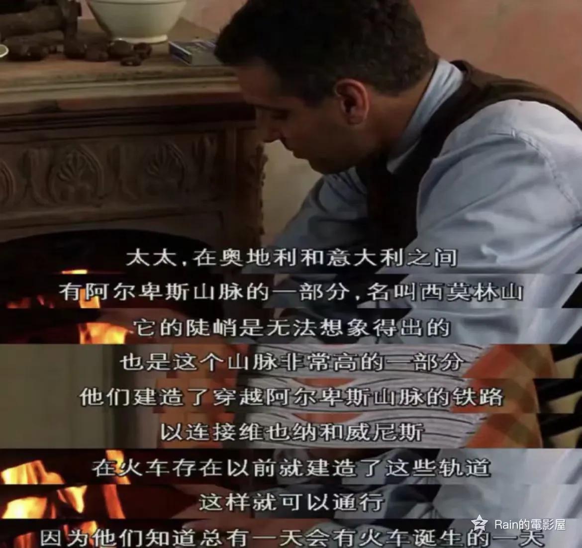 电影里提到一个“铁轨等候火车的故事”在奥地利和意大利交界处,最险峻的阿尔卑斯山脉上,人们在上面修建了铁路,用来连接维也纳和威尼斯。这些铁路是在还没有火车之前就建好了,因为他们知道:总有一天火车会来。