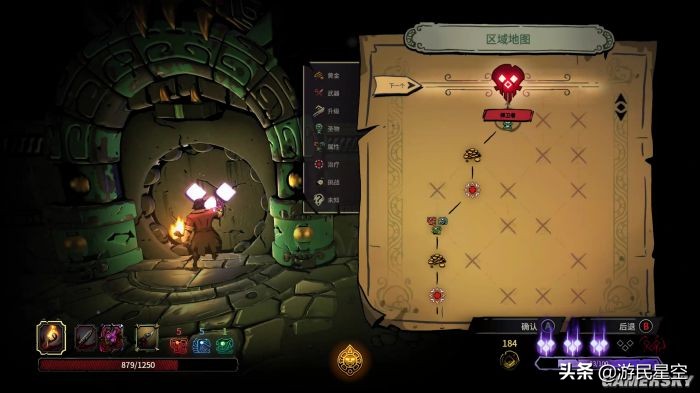 在roguelike机制上,《无间冥寺》和《黑帝斯》相似的一点是,他们都是由一个个随机房间构成的探险路线,并且玩家能够在进入下一层之前看到房间内的关键战利品。不同之处在于,《无间冥思》中我们能够看到完整的前进路线和所有房间的战利品,包括武器、属性提升、钱币奖励、特殊圣物等等,我们可以根据自己的需求规划一条路线,相较于《黑帝斯》的随机性,《无间冥寺》明显要更具策略性。