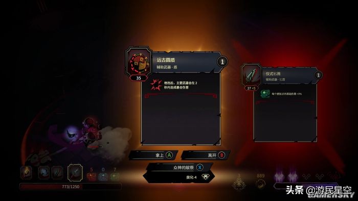 不论玩家挑战神殿成功与否,都可以保留在战斗中缴获的几种代币,并将其于解锁特殊能力和武器。纸面上来看,《无间冥寺》的武器库颇为丰富,包含剑、盾、弓、鞭、矛、锤等各种类别,但实际上多种武器之间的同质化非常明显,导致很多武器用起来在战斗思路上没有太大差异。这也是本作的游戏性被《黑帝斯》拉开差距的关键一环。