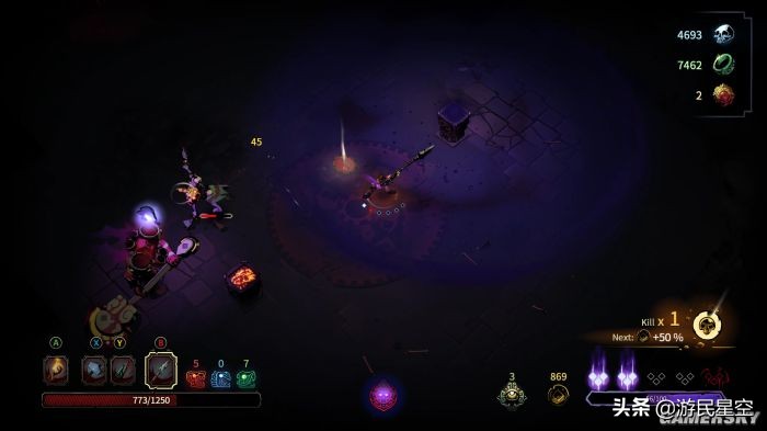 的确,《无间冥寺》的弱故事性让我们能够更加专注于战斗,但同时也导致游戏丧失了一些吸引玩家的“钩子”。我们无从得知主角的身世、神殿的背景,甚至在探险的过程中也不会出现任何一名npc来引导玩家度过茫然的新手期,而是用最简单的弹窗教程来叙述游戏的玩法。