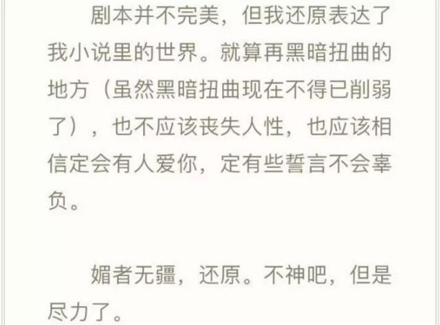 但那些不可描述的画面你是一帧都看不到的,为此,小说原作者半明半寐还在微博上中肯的为「神还原」填坑。