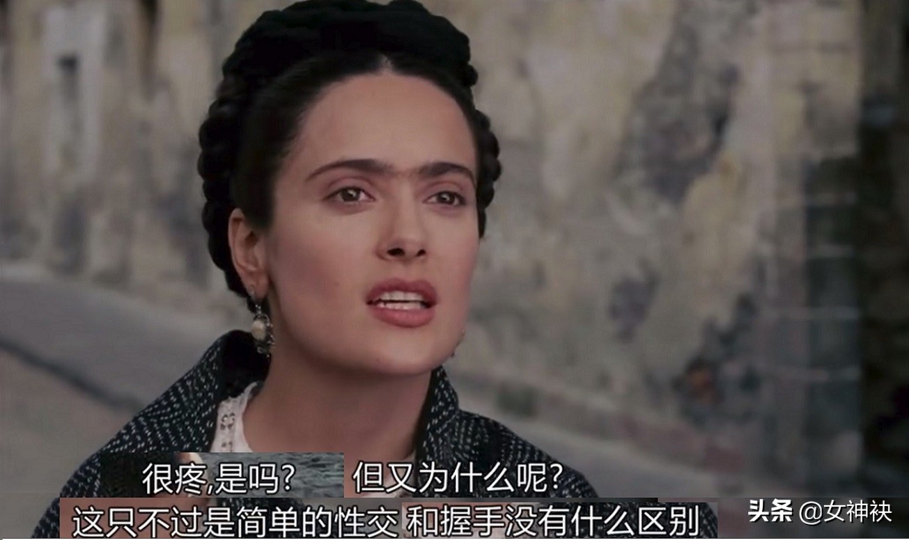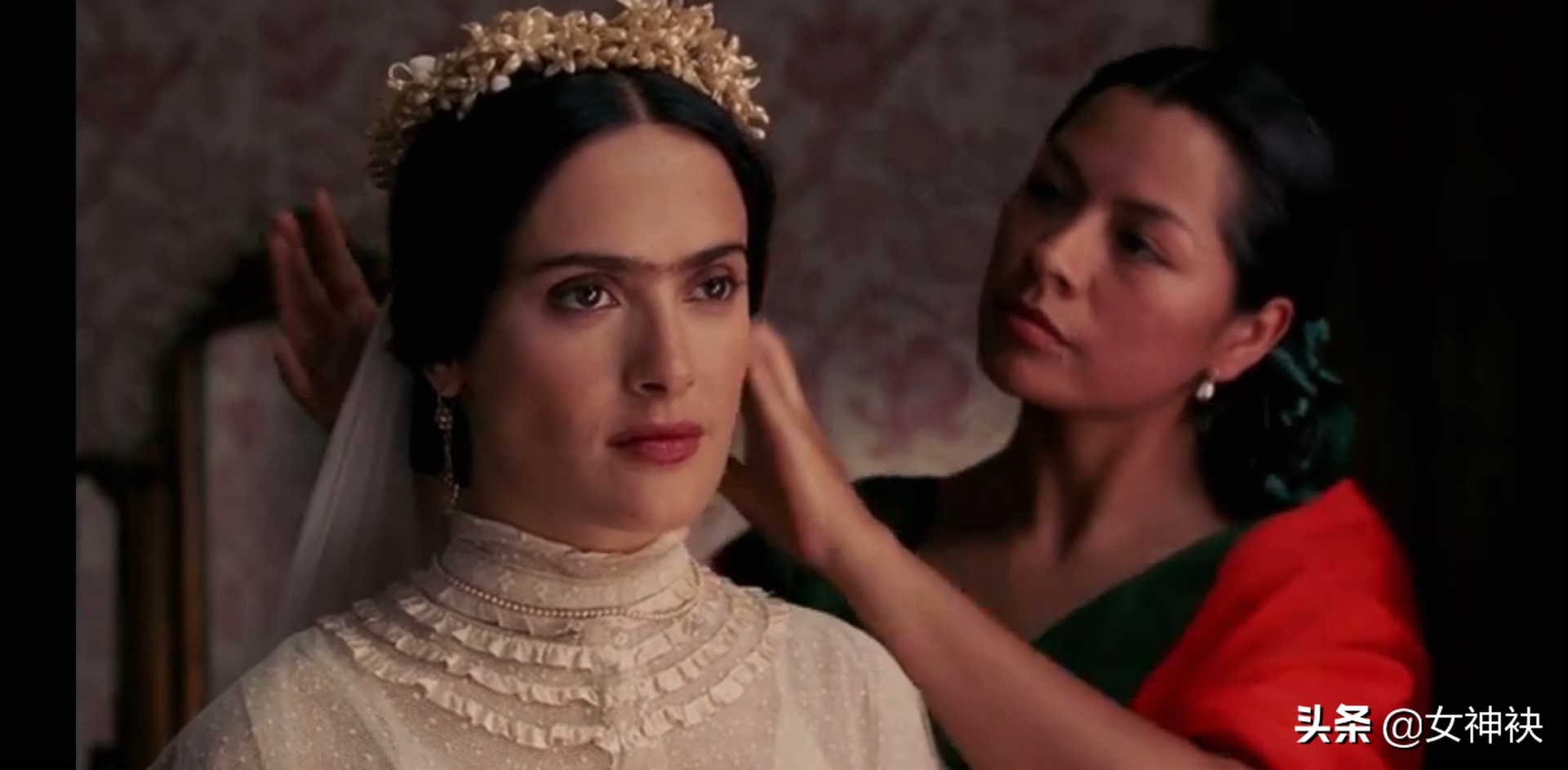 其实这部电影里面,并不是萨尔玛.海耶克最风情万种的状态,女主角扮相中两条眉毛连成一字,因为身残瘸着腿走路,却偏偏迸发出另一种浓烈的生命之美。