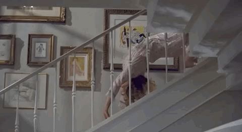 扭曲着身体,用极其怪异的姿势爬行下楼。