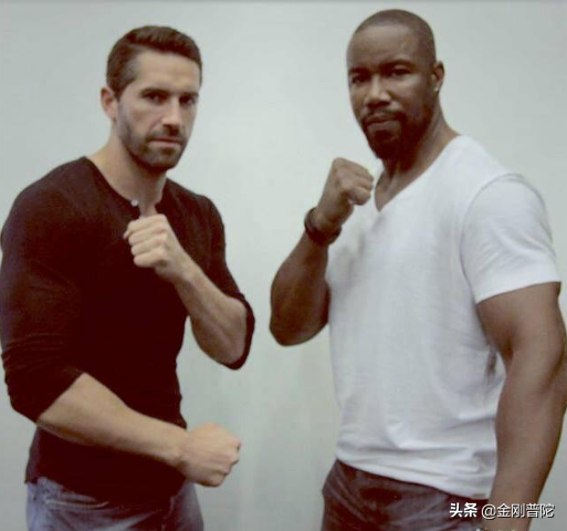 你看中国功夫明星陈虎在担任《太极侠》主角的时候多么英姿飒爽,但是把他放到电影《三重威胁》里同迈克.加怀特和迈克尔·比斯平等人在一起显得是那样单薄完全失去了打星光环。还有就是在《女拳霸》中演出风采的杰佳·亚宁,她在《三重威胁》电影中穿梭在身壮如山力大如牛的这些打功夫的大老爷们当中简直可以忽略不计了。你看她同功夫明星斯科特阿金斯在一起的合影,杰佳·亚宁依偎在斯科特阿金斯身边太娇小就像是“昆仑山上一棵草”了哦!那里还能体现出一点女拳霸的亮点和气质了呢?