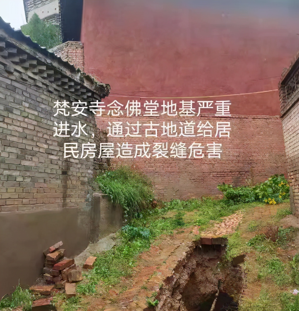 水流渗过古地道,导致房屋前出现硕大的裂缝。