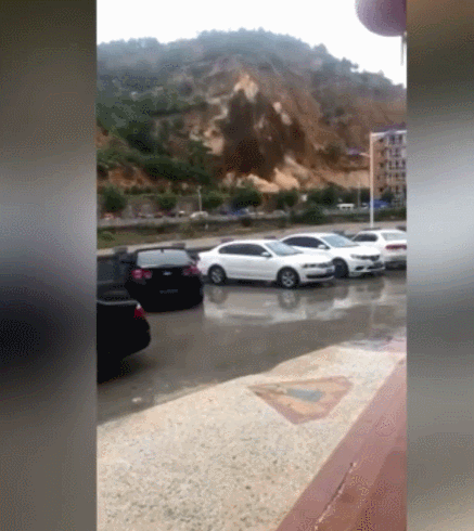 大面积的山体滑坡、塌陷开裂的地面、老人泡在水中遭殃的庄稼……画面实在让人痛心。