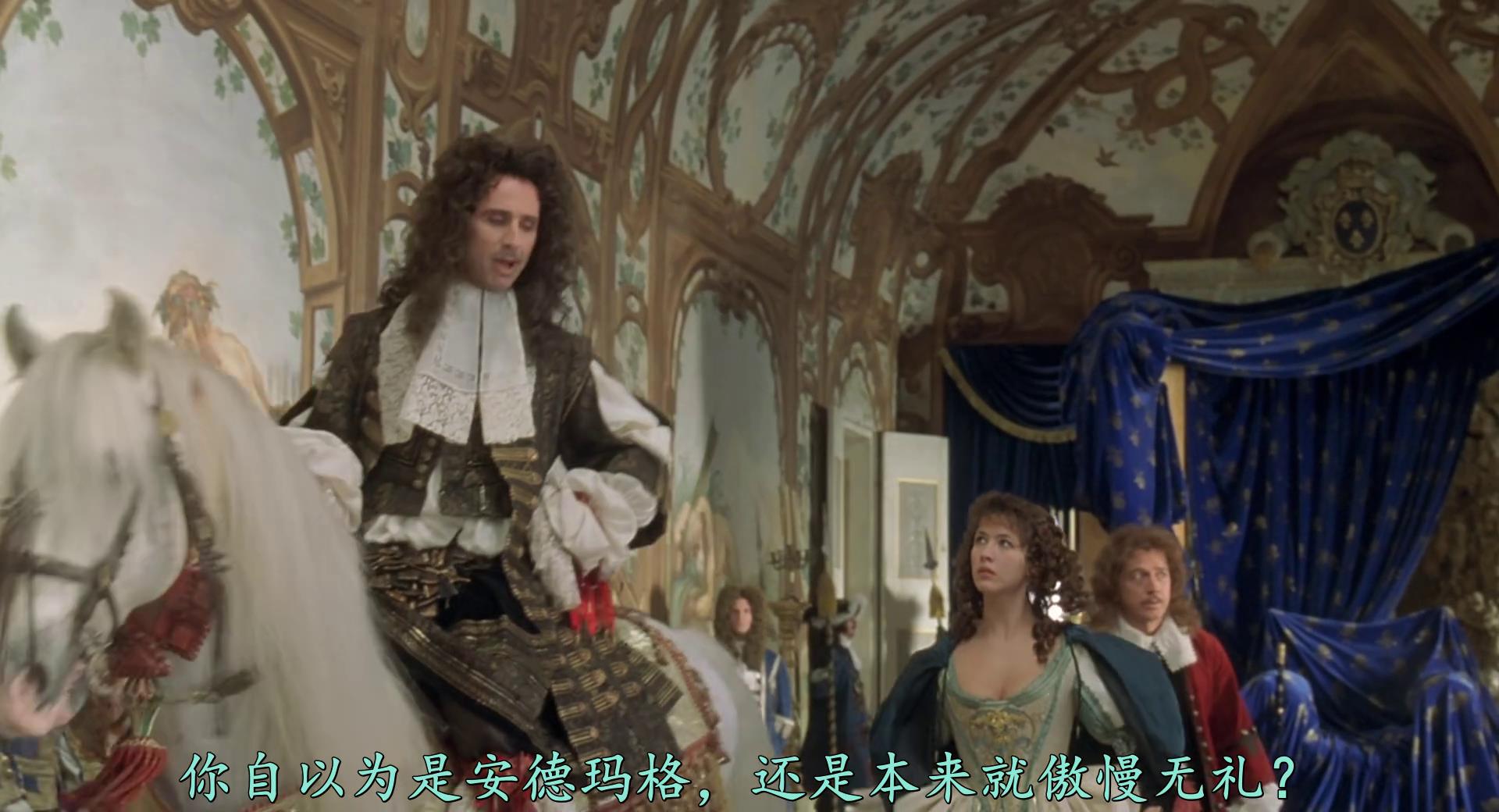 守卫不许玛奇丝进去,她用美色哄骗了他。进去后,玛奇丝能说会道,路易十四也不是那么生气。