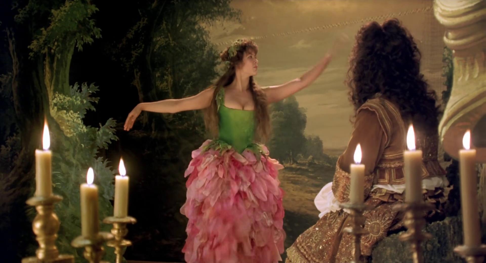 晚上,路易十四如期而至。慌乱之中,玛奇丝匆匆上台,打扮得像花仙子般美丽动人,可是却忘穿了安全裤。