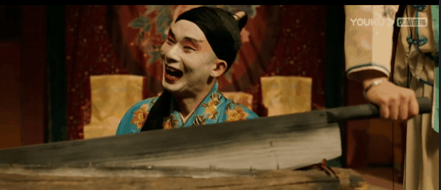 台上戏子们表演的是杀人戏,一刀下去,变成了纸糊的头。
