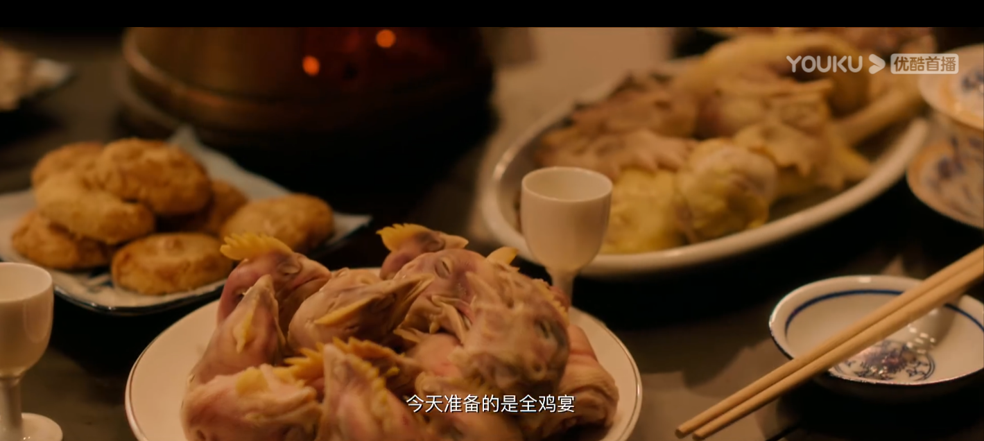 吃的是全鸡宴,端上来的除了鸡头鸡脚就没别的菜。