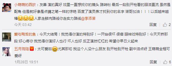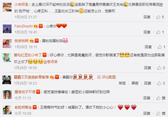 当被问到“王萌萌”表情包迅速扩散怕不怕丑时,李添诺说:“丑吗?说明大家记住我演的这个角色了。如果真觉得丑,@李添诺 微博有帅照(笑)。”