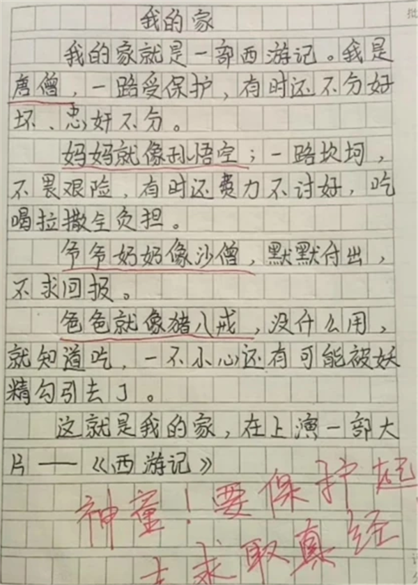 部分小学生不会中规中矩按照教材要求写作文,却总是“脑洞很大”,写出来的作文常常让人“惊喜不已”,还有的作文是让大人“只要惊没有喜”,看了就哭笑不得。