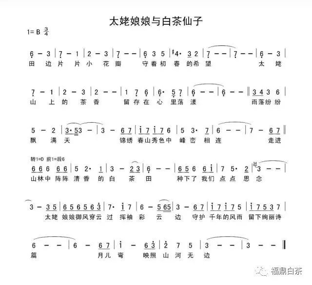 《太姥娘娘与白茶仙子》片头曲是由福鼎籍青年歌手梁文静演唱。梁文静出生于福鼎,自5岁起跟随宁德市音乐家协会副主席、福鼎市音乐家协会主席李丹老师学习声乐。本科就读于中国音乐学院声歌系,师从中国音乐学院声乐教研室主任、博士生导师、国家一级演员戴滨教授。自中国音乐学院毕业后,又以优异的成绩考入中央音乐学院民族声乐表演系攻读硕士学位,师从中央军委政治工作部歌舞团男高音歌唱家、国家一级演员阎维文导师。