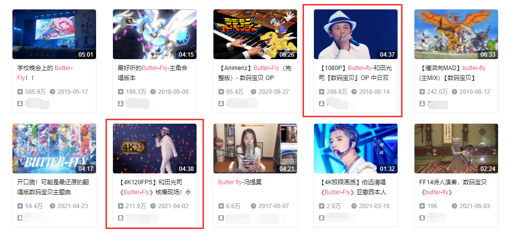 而《数码宝贝大冒险》里的几首主打歌,则更是经典中的经典。主题曲《butter-fly》,堪称“永远滴神”。如果你在各大网络社区里聊童年情怀,聊那些童年经典的主题曲,这首歌几乎不可能被绕过。b站诸多记录“童年向”、“怀旧向”经典动画歌曲的视频中,《butter-fly》也是常客,甚至不少up主会直接用《数码宝贝大冒险》的一些画面,来做视频的封面。