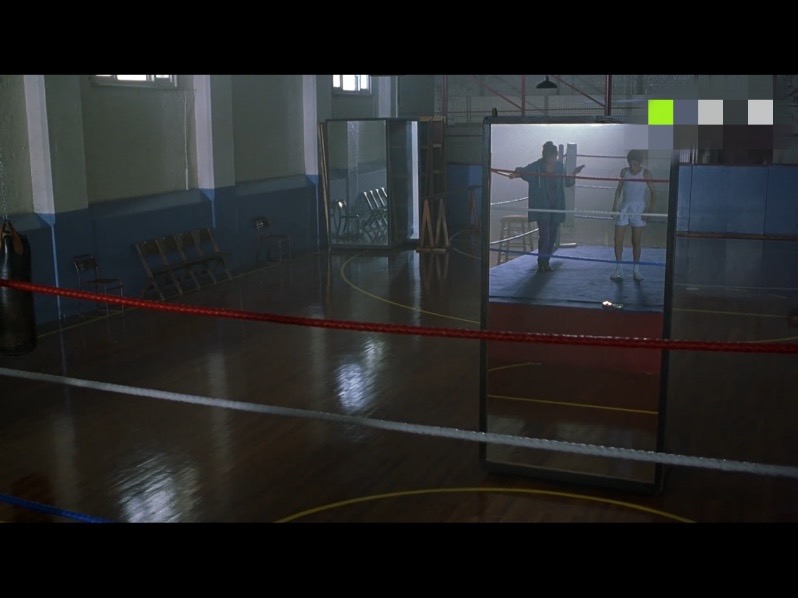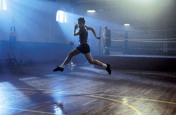 电影一开场,艾略特在进行拳击比赛,此时他的身体并不敢舒展,有些畏畏缩缩的,于是他最终只能被击倒在地。在被迫留下来练习打沙袋时,他在目睹隔壁教芭蕾舞后,打沙袋的动作明显轻盈与雀跃很多,这便为之后她陷入对芭蕾舞的迷恋留下了一个伏笔。