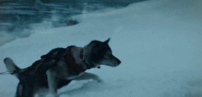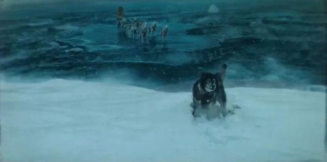 赛帕拉把多哥扔上岸,靠多哥一已之力,把将其它雪橇犬拉上了岸。