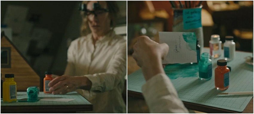 - 拜蒙可以精神控制他人,也可以控制物体,比如电影中,这个蓝色颜料瓶就是被拜蒙凭空弄倒的,为的是把颜料洒在邪教成员胖大妈的联系名片上,引起安妮的注意。