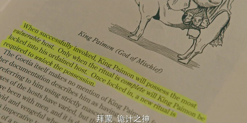 奶奶艾伦的遗物中有一本书,书上说,只有新的仪式,拜蒙才会释放宿主。(黄色部分翻译)