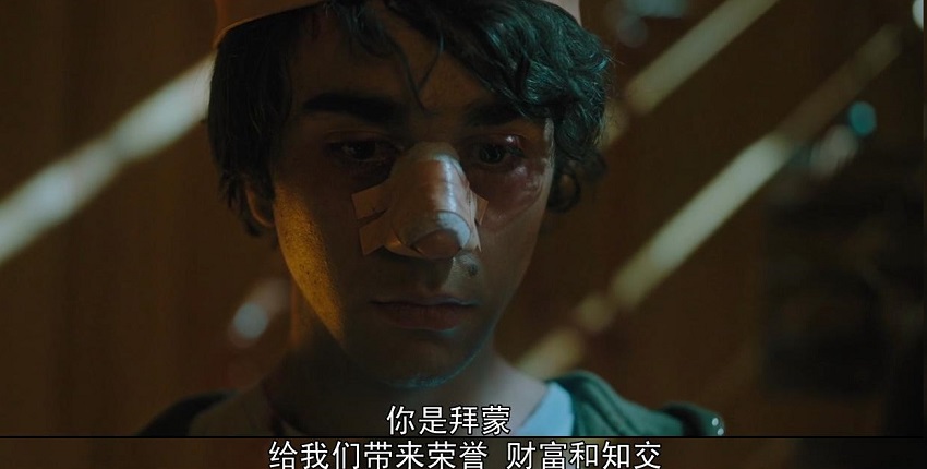 奇异光束和弹舌音都代表了拜蒙,有这两个标签出现时,就是拜蒙出现的标志。电影中总共出现了七次光束和七次弹舌音,每次都意味着拜蒙的意志在发挥影响。